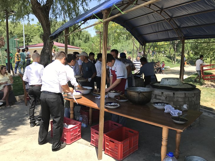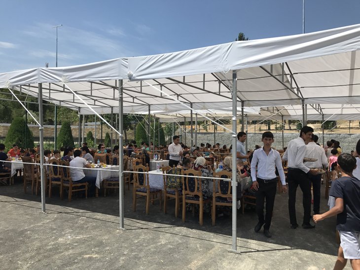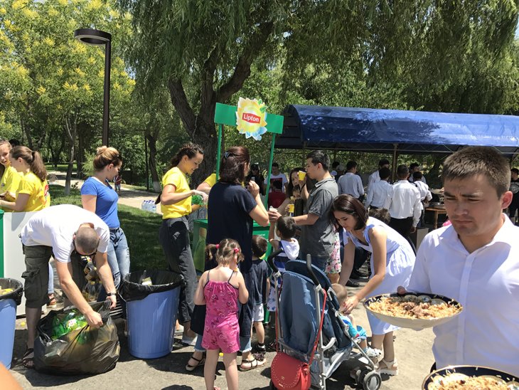В экопарке действует пока только два кафе — на пирсе возле водоема, и второе около смотровой площадки. Несколько сооружений завешаны плакатами — "скоро открытие". В честь открытия парка был приготовлен плов на 100 кг, который могли отведать все желающие и совершенно бесплатно. Рядом бесплатные напитки раздавал один из популярных местных брендов. Для детей здесь создана небольшая деревянная экоплощадка.