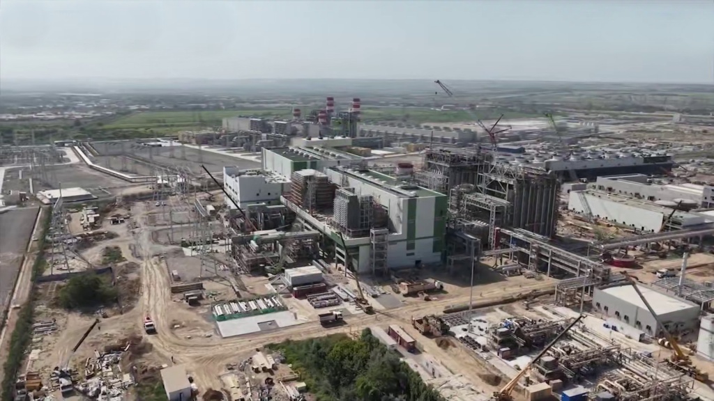 Проект реализуется в Баяутском районе китайской компанией при участии партнеров из Катара, Японии и Франции. В работах задействованы около 2 тысяч специалистов. По данным подрядчика, завершено более 80 % строительно-монтажных работ. Запуск объекта намечен на июнь следующего года.
