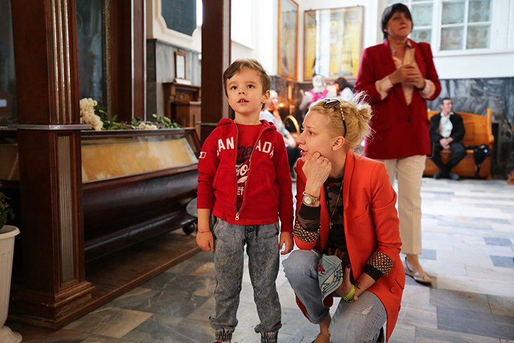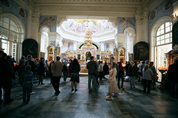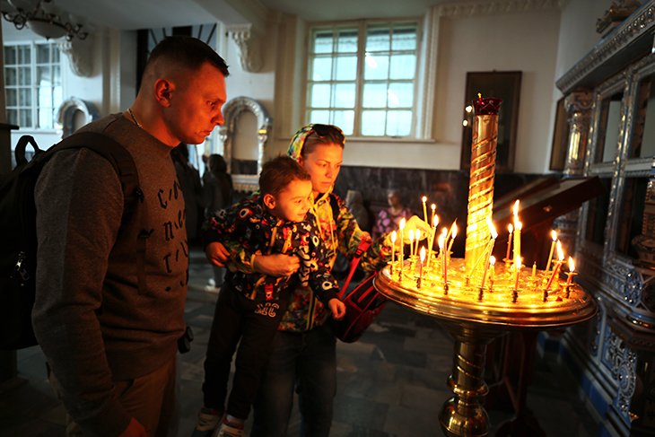 Пасхальная служба начинается в полночь с субботы на воскресенье. Верующие несут с собой в церковь пасхальные корзины с куличами и яйцами, чтобы во время службы освятить их содержимое. Отметим, что освященную пищу нельзя выбрасывать. Ее нужно съесть за пасхальным столом, поделиться с родственниками и соседями или раздать нуждающимся.
