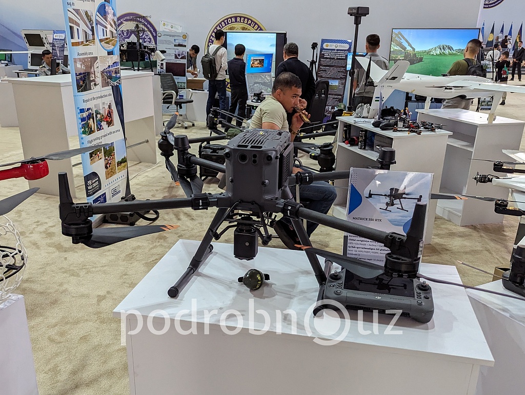 Неподалеку на улице расположилась выставочная зона с разработками студентов Ташкентского университета информационных технологий – дроны, камеры, образцы национальных операционных систем. Все это в будущем послужит созданию независимых систем и средств разведки и ведения боя.