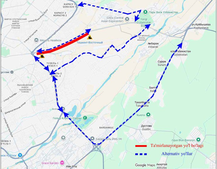 Узбекистан, Ташкент – АН Podrobno.uz. На ряде улиц Ташкента временно ограничат движение транспорта в связи с проведением дорожных работ.