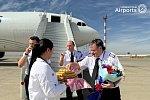 По информации пресс-службы Uzbekistan Airports, самолеты, прибывшие в аэропорт Навои, по традиции встретили водяной аркой.