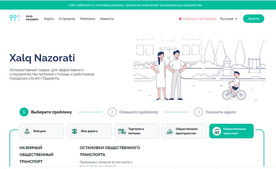 "Через сервис Xalq Nazorati, созданный хокимиятом Ташкента, вы можете подать заявку о проблемах городской инфраструктуры, сферах жилищно-коммунального обслуживания и благоустройства. Сервис доступен на сайте, а также через мобильное приложение – для пользователей Android и iOS", – отметили в пресс-службе столичной администрации.