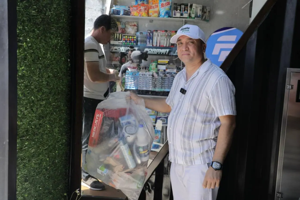 Именно здесь впервые в республике начали покупать перерабатываемый мусор: населению выплачивают 1,5 тысячи сумов за белый пакет и 500 сумов за коричневый. Кроме того, здесь же открыта небольшая торговая точка, в которой жители могут что-то купить за полученные деньги.