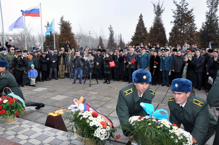По окончании церемонии состоялось возложение цветов с государственной символикой Российской Федерации к подножию памятника воинам-афганцам.