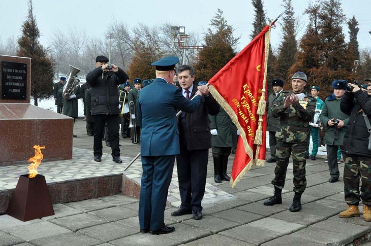 В знак благодарности и признательности за сохранение и сбережение общих для России и Узбекистана исторических ценностей атташе по вопросам обороны при Посольстве Российской Федерации в Республике Узбекистан Сергей Чернышев передал объединению «Ветеран» копию знамени 40-й армии Туркестанского военного округа.