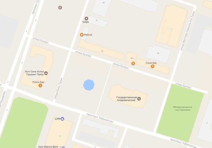 Новый зал разместиться в самом центре столицы на улице Бухара, 10. Здесь расположено здание Республиканской фондовой биржи. Рядом, например, также находятся ЦУМ, Большой театр имени Алишера Навои и другие культурные объекты.