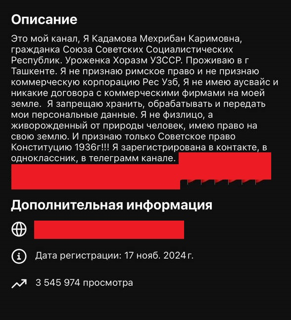 Сегодня такие движения представляют собой не просто интернет-фольклор, а сетевую инфраструктуру дезинформации, где конспирология соседствует с агитацией против основ независимости. Через YouTube, Telegram и иные площадки эти пользователи создают квазисообщества, где идеи о "нелегитимности Узбекистана" находят своих сторонников.