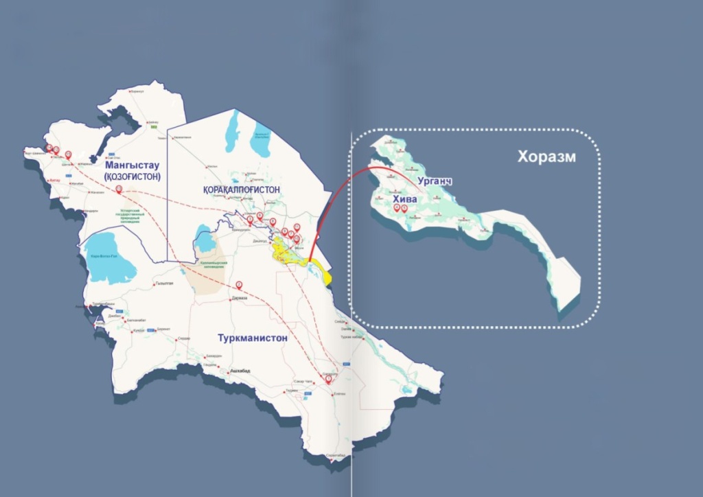 Узбекистан, Ташкент – АН Podrobno.uz. Новый трансграничный маршрут объединит главные достопримечательности трех стран Центральной Азии. Кольцо будет проходить от Туркменистана через Хорезм и Каракалпакстан в Казахстан.