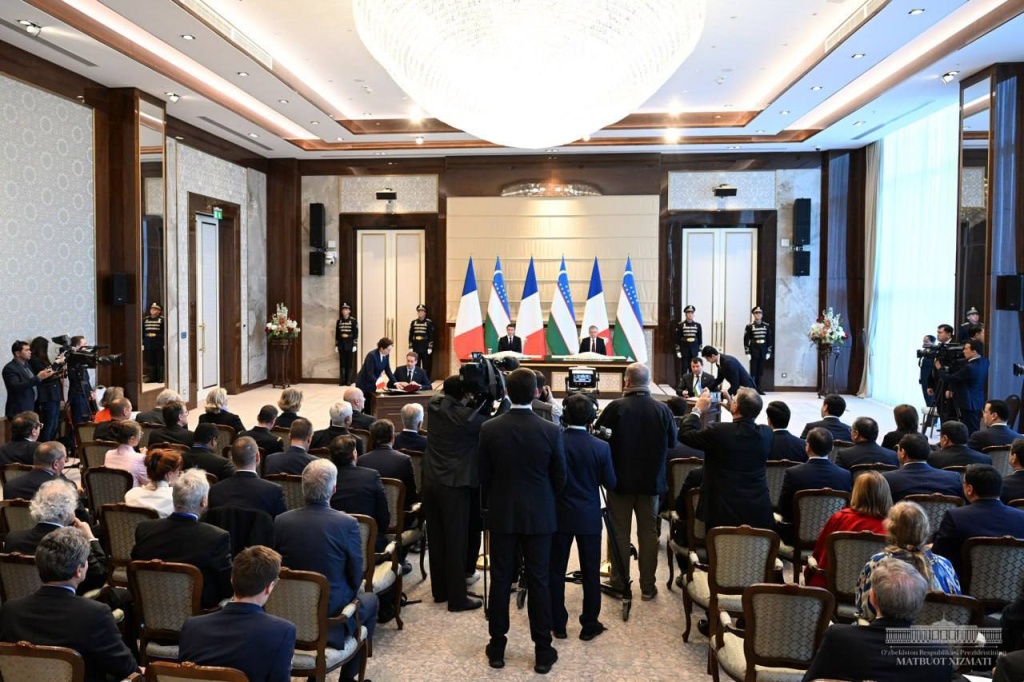 Узбекистан, Ташкент – АН Podrobno.uz. По итогам визита президента Франции Эммануэля Макрона в Узбекистан было подписано 8 документов. Их главная цель – развитие практического сотрудничества между странами, сообщает корреспондент Podrobno.uz.