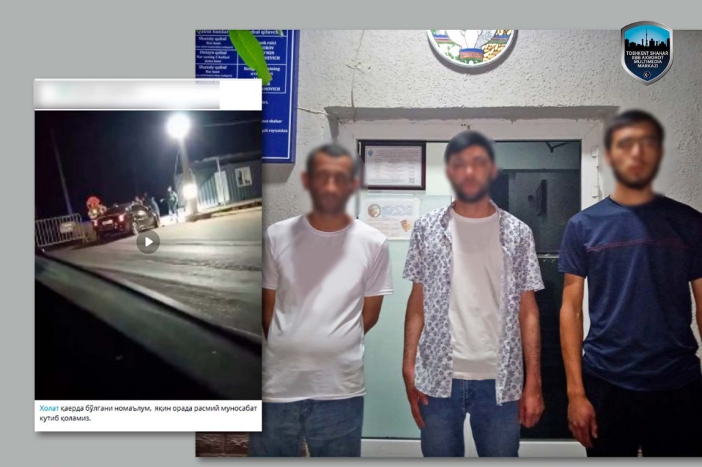 "28 апреля около 1.35 ночи сотрудники, несущие службу на посту ДПС "Янгихаёт" в Ташкенте, остановили автомобиль "Ласетти" и попросили водителя предъявить документы. В это время три пассажира (23, 28 и 46 лет) стали нарушать общественный порядок, а также оскорблять правоохранителей. Они также оказали сопротивление сотрудникам ОВД, не выполнив их законные требования", – отметили в ГУВД.
