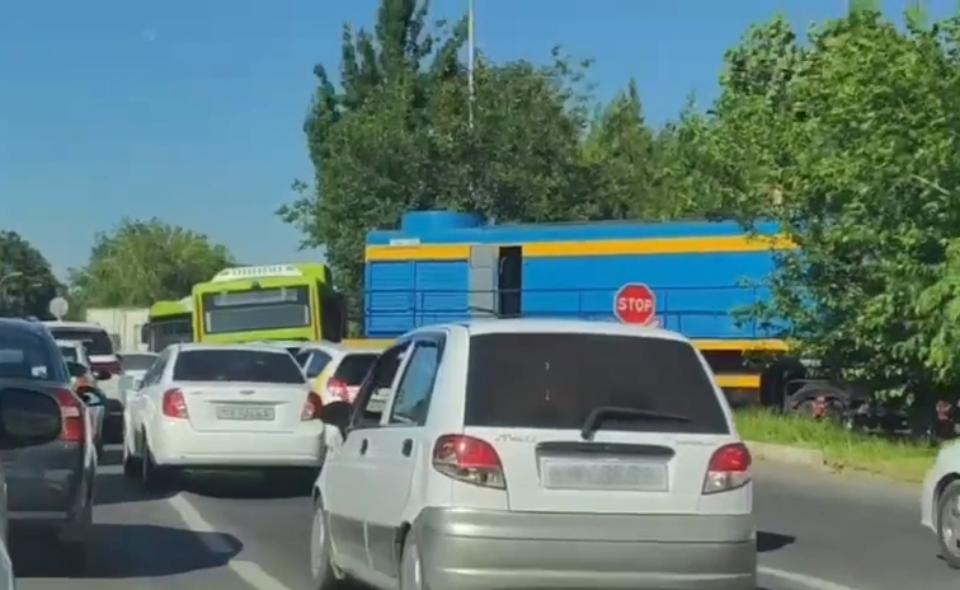 Узбекистан, Ташкент – АН Podrobno.uz. Сегодня в 15:50 автобус King Long на маршруте №11 при движении по улице Кумарик столкнулся с тепловозом, принадлежащим "Узбекистон темир йуллари".