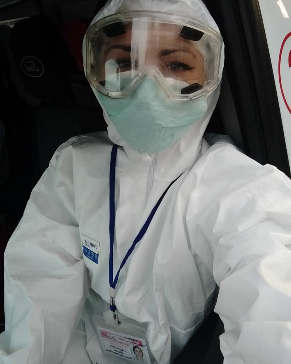 "Представьте себе, что идете по улице в такой зной в футболке и шортах, вам жарко, у вас потеет лицо, спина. А теперь – вы в медицинской форме, которая состоит из штанов и рубашки, а поверх этой одежды еще комбинезон защиты, который не пропускает ни воздух, ни влагу, ничего. Он еще и с капюшоном. Плюс на нас еще две маски и очки, а на ногах сапоги или бахилы. В этом обмундировании безумно жарко и все время хочется пить, но этого делать нельзя", – рассказывает собеседница.